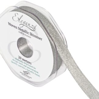 Silver No.66 Woven Metallic Shimmer Ribbon – (15mm x 20m)