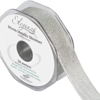 Silver No.66 Woven Metallic Shimmer Ribbon – (25mm x 20m)