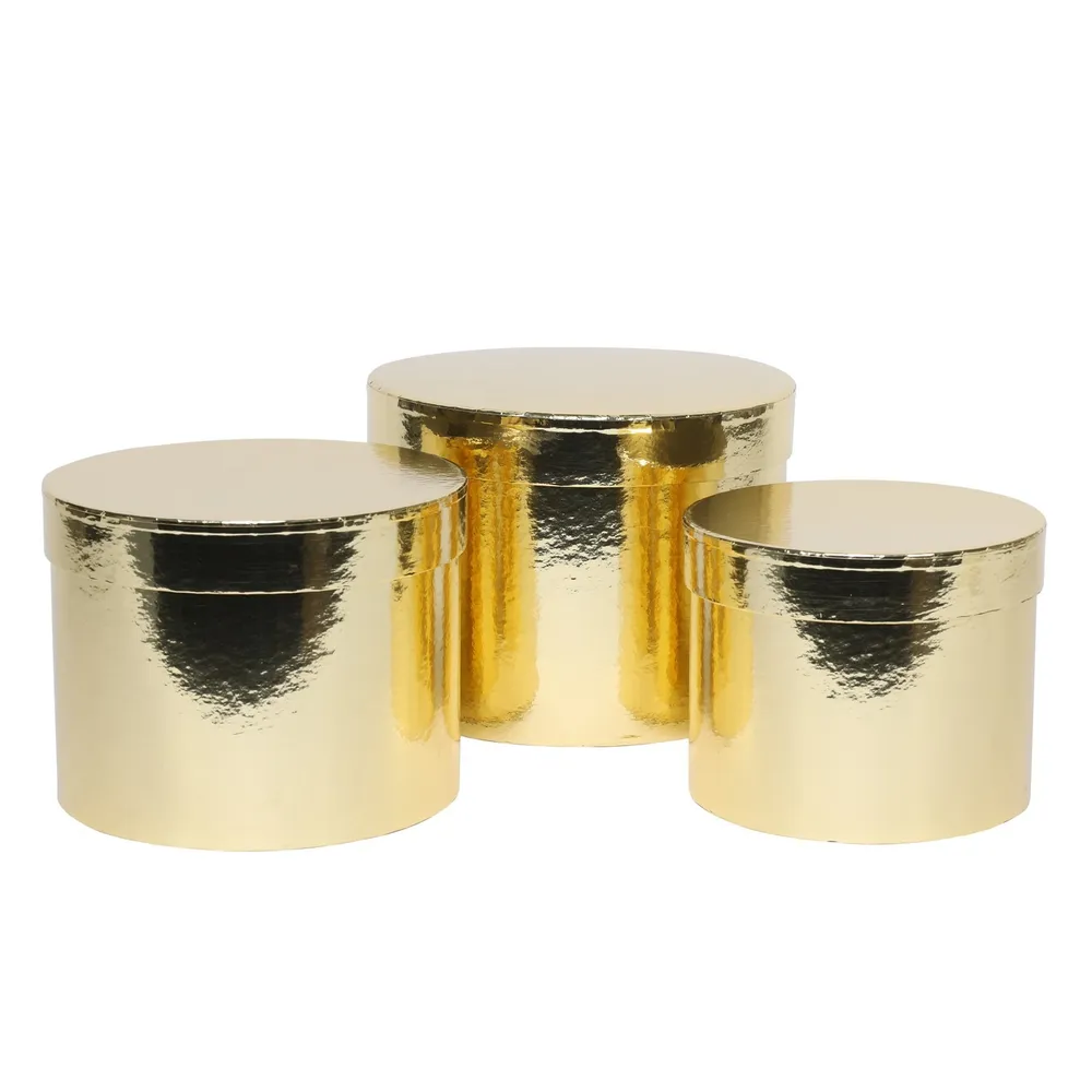 Metallic Gold Hat Box (Set of 3) – (Largest – D19 x H14.4cm)